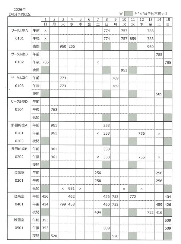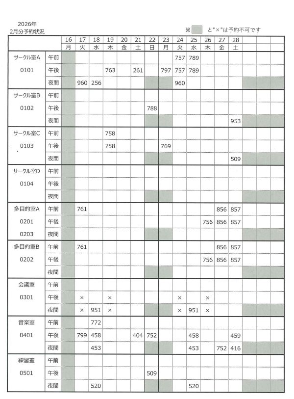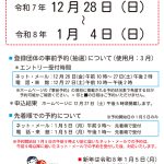 - 令和8年2月分 予約状況表 【2025年11月28日10時現在】〇この表は事前予約のための表です。通常の予約については反映されませんのでご注意ください。 〇表の■と✕は予約不可です。 〇事前予約について メール受付・電話受付それぞれ受付日時が異なりますので、ご注意ください。 メー […]