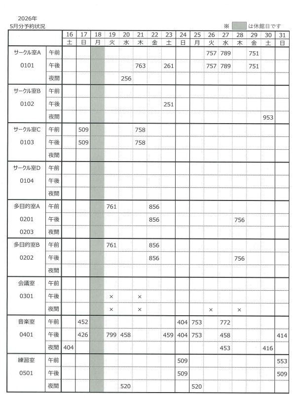※貸室の空き状況は、「予約一覧表」でご確認ください。