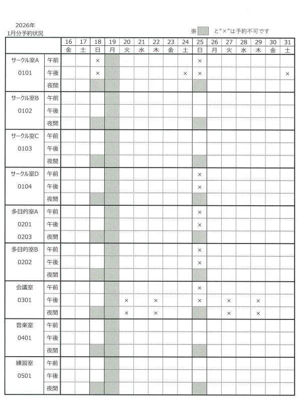 令和8年1月分 予約状況表 【2025年10月29日10時現在】