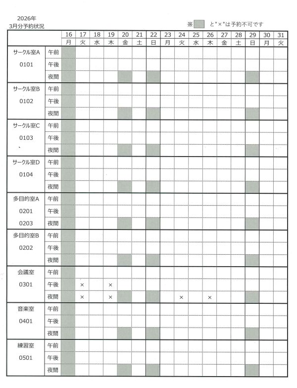 〇表の■と✕は予約不可です。