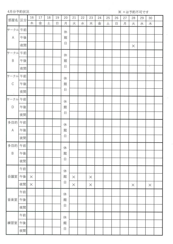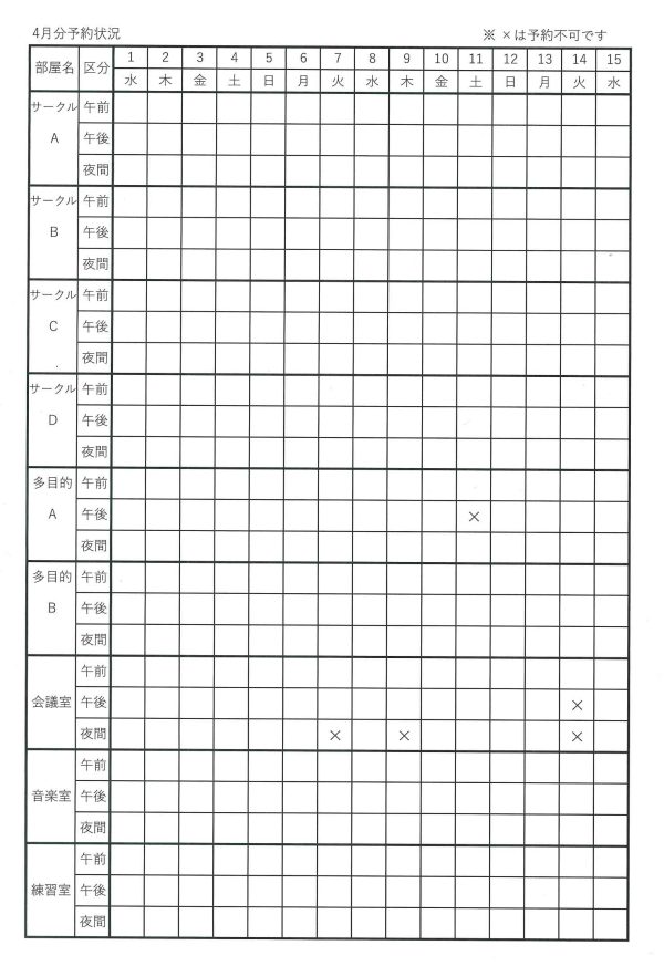 〇表の■と✕は予約不可です。